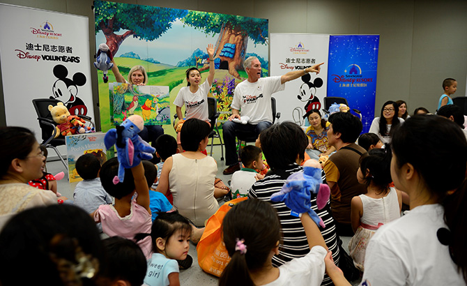 迪士尼志愿者经常在浦东图书馆为小读者们举办亲子故事会。这些有趣的互动阅读体验在把迪士尼故事讲述的传统带给中国儿童和家庭的同时,也鼓励父母多花时间和他们的孩子相处,一起享受阅读的乐趣,以此加强家庭联系的纽带。
